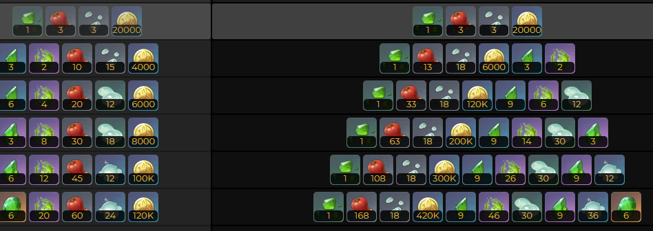 生长碧翡碎屑、绝云椒椒、史莱姆凝液、生长碧翡断片、灭诤草蔓、史莱姆清、生长碧翡块、史莱姆原浆、生长碧翡