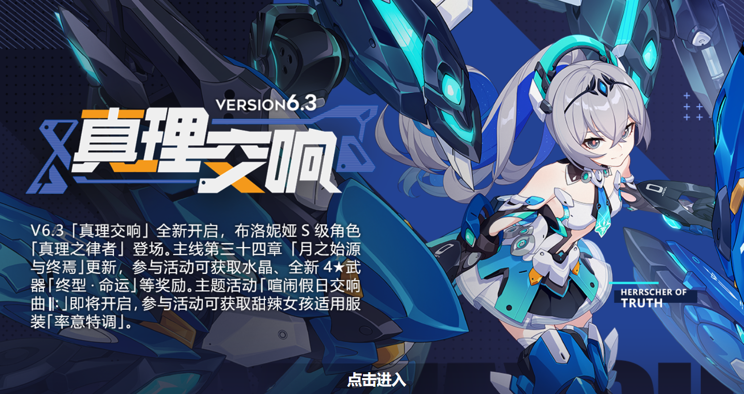 本专题页收录了6.3版本重要官方资讯及全新角色、武器、圣痕、活动相关信息。点击页面对应分类,即可查看相关内容。此外,舰长还可通过点击查看版本热点以及更多信息栏,进一步查阅有关6.3版本「真理交响」的近期重点内容。