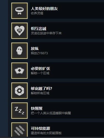 1. 人类最好的朋友是在一个星球事件碰到一只狗,我们只需要让它留下来就能获得成就,相互忠诚则是在通关后,狗狗还活着就能获得成就。