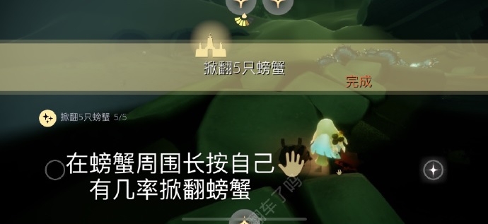 完成方法:在螃蟹周围长按自己大叫可掀翻螃蟹。