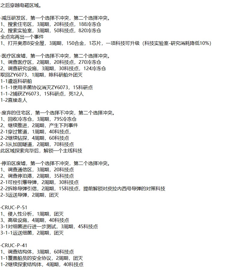 1、调查残骸,2周期,反正我点了这个选项游戏就卡死