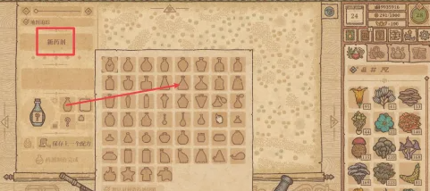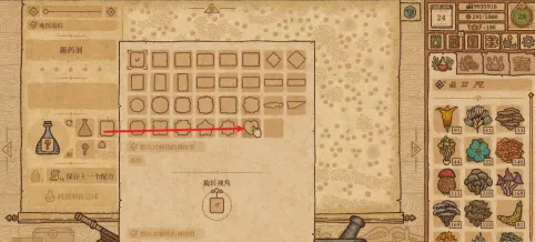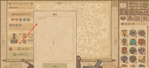 搅动勺子移动到图示位置,通过加水和搅拌使冰霜药剂达到Ⅲ级,按动风箱加热坩埚获得药剂。