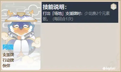 评价:T2.5。阿圆的效果是少有的当回合即可回本的省费类卡牌,与瓦格纳、蒂玛乌斯慢悠悠的叠层相比,阿圆的固定减费用用起来安逸不少。阿圆的效果以及对场地牌数量的要求使得它几乎只能于慢速队中出现——而后者在神宵遍地走、科皇多如狗的当下应该算不上主流阵容,只能说潜力尚可,但缺乏发挥环境,未来可期。