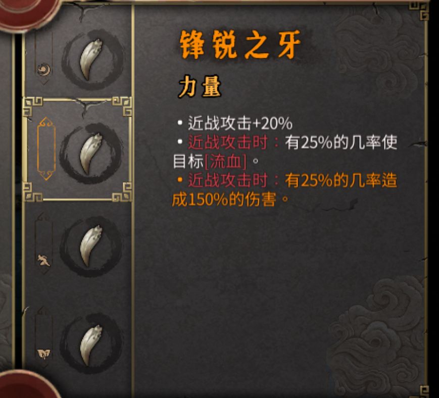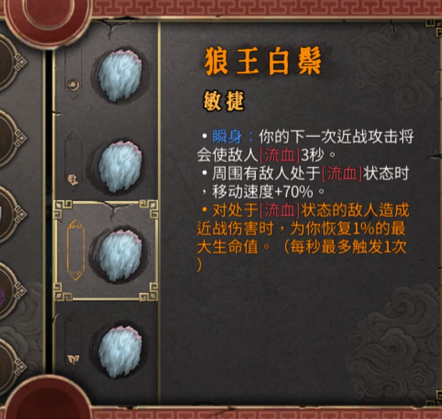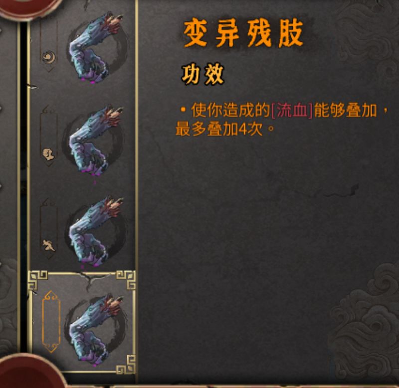 白虎➕牙齿,流血特效基本不会断,残肢功效就可有可无了。