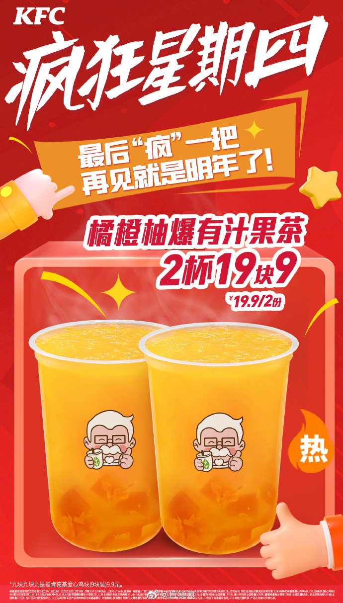 酸甜有层次【橘橙柚爆有汁果茶】2杯19块9;