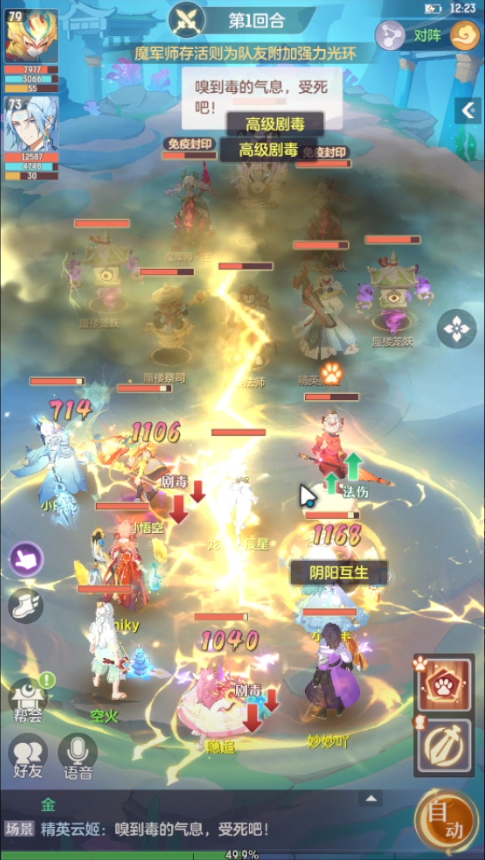 注意:若敌方治疗单位抵抗了控制技能,可以让队伍中的龙宫将AOE技能的目标锁定在敌方倒地的目标上,由于龙宫通常出手速度较慢,及时敌方治疗单位复活起来了某些敌方目标,龙宫也可最后出手进行残血的收割。