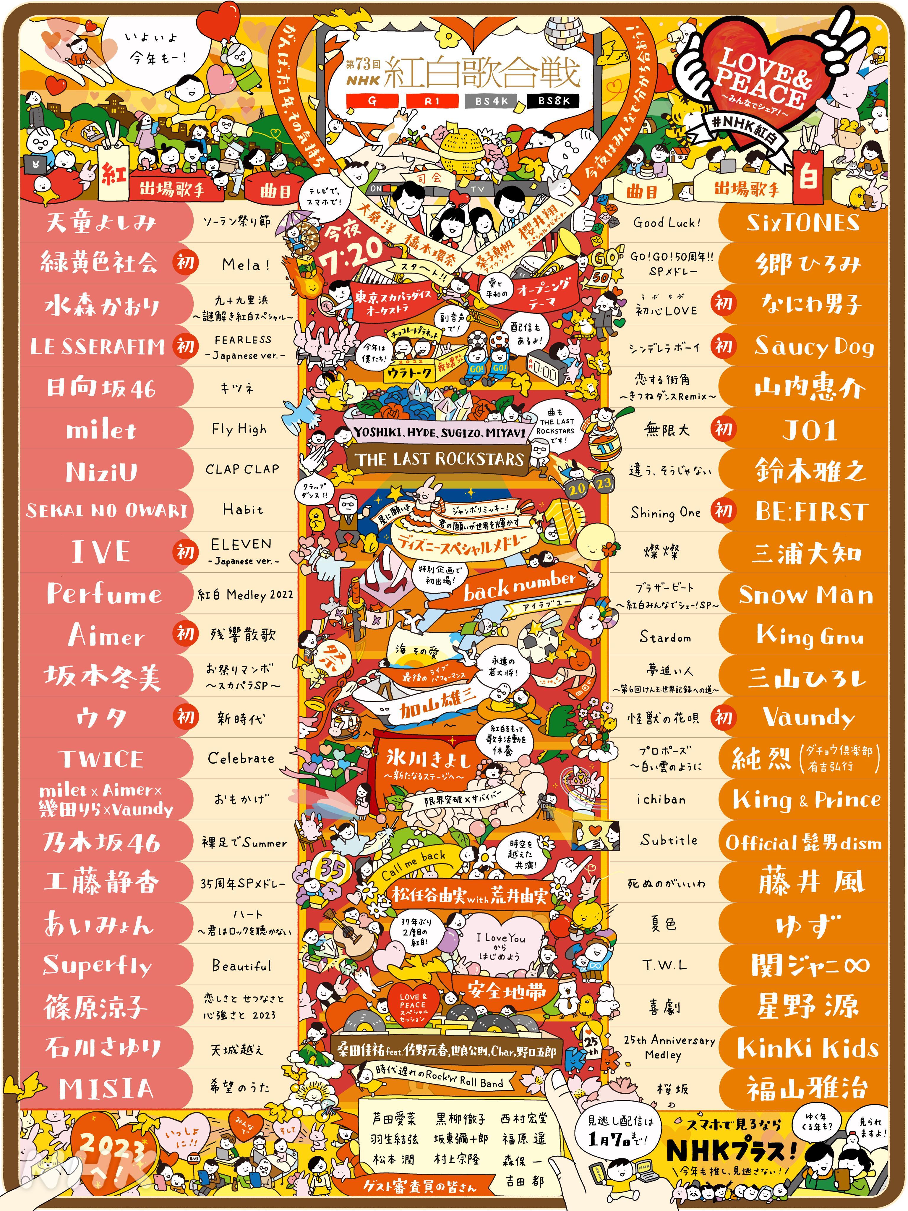 红组初登场:IVE、ウタ、Aimer、緑黄色社会、LE SSERAFIM