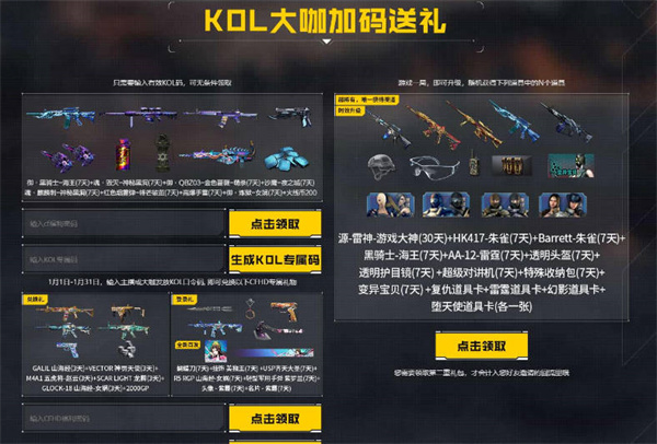 3. 大咖送码,在这里输入有效的kol口令就可以获得对应的游戏道具。