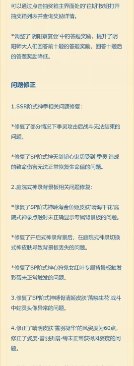 2023-01-04 阴阳师体验服1.4更新内容 阴阳师体验服1.4更新了什么