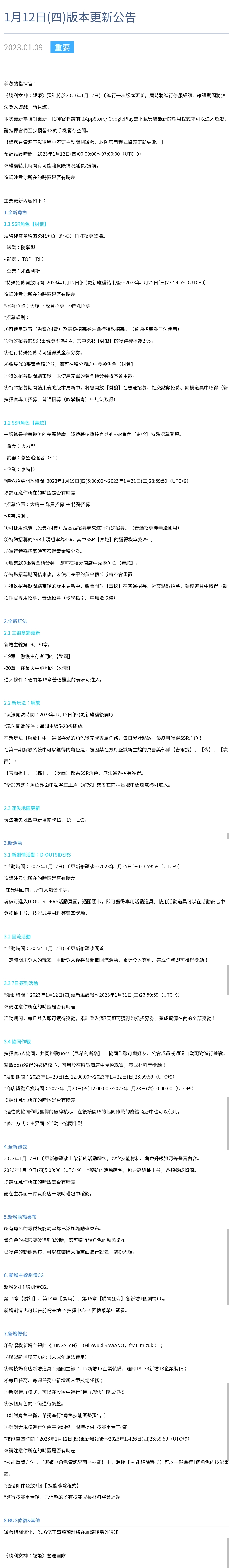 2023-01-11 nikke胜利女神1月12日更新公告 nikke1.12更新内容一览2023
