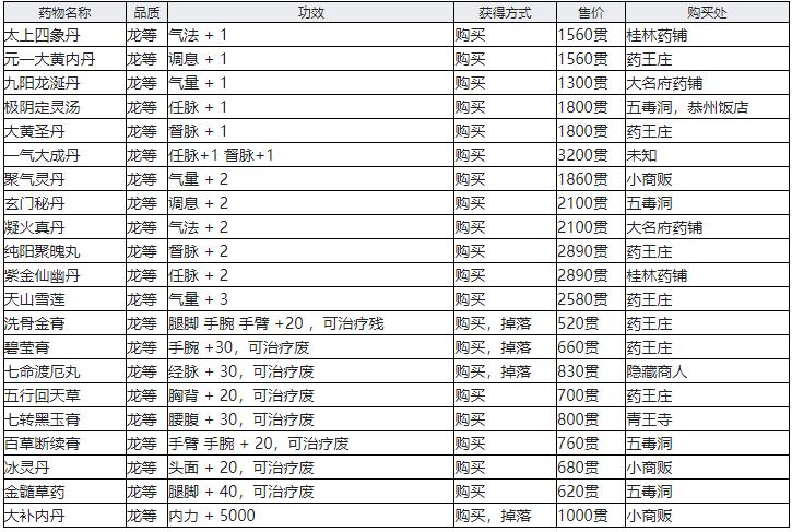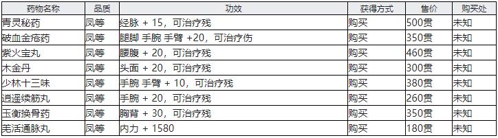 以上就是江湖十一全灵丹妙药效果及获得方法,感兴趣的玩家可以参考本篇攻略,希望能对大家有帮助,想了解更多资讯攻略和教程赶快收藏手游巴士,多特小编为您呈现精彩内容。狼等药物: 小计7种