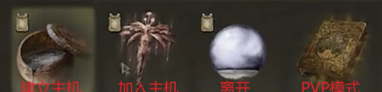 进入游戏后任何一个玩家通过游戏内道具Tiny Great Pot来建立主机,主机建立好后其他人通过道具Effigy of Malenia来加入游戏。主机关闭联机或玩家退出与主机的联机用Separation Mist道具。还有一本书的道具是调整PVE与PVP的基本用不到。