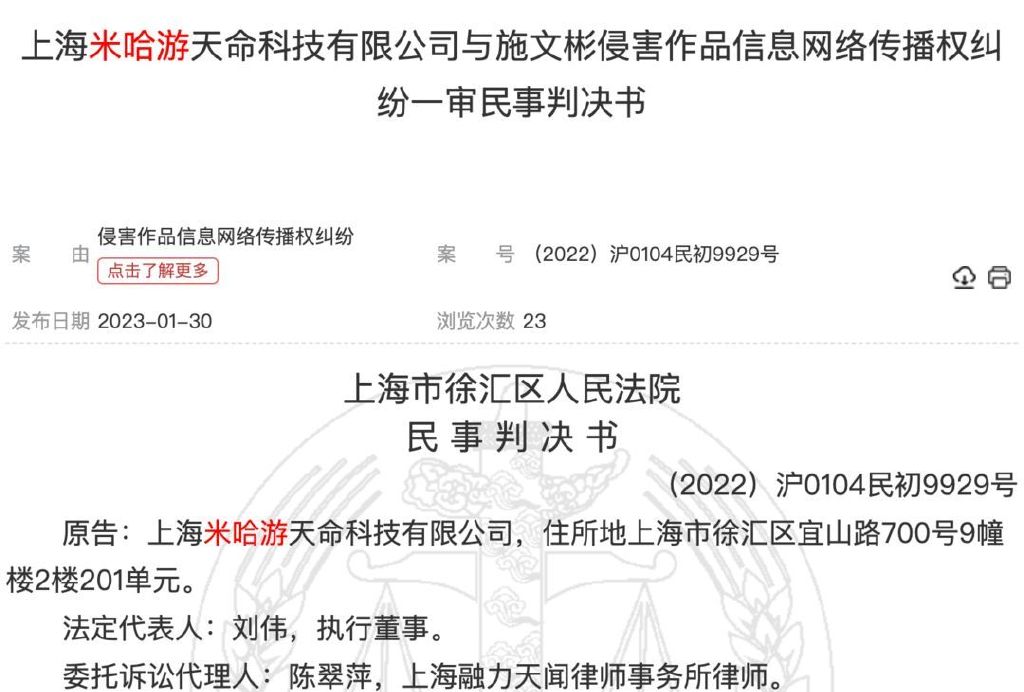 2023-02-02 《原神》内鬼案判决公开了吗 原神内鬼事件赔偿多少