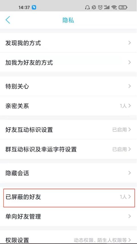 5、在已屏蔽的好友页面即可看到黑名单的人。