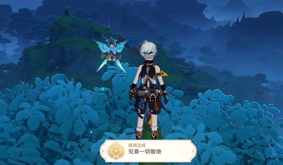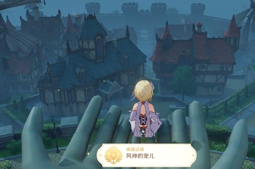 从蒙德城上方锚点飞到风神像手中(也可以爬上去),点击坐下后完成成就。
