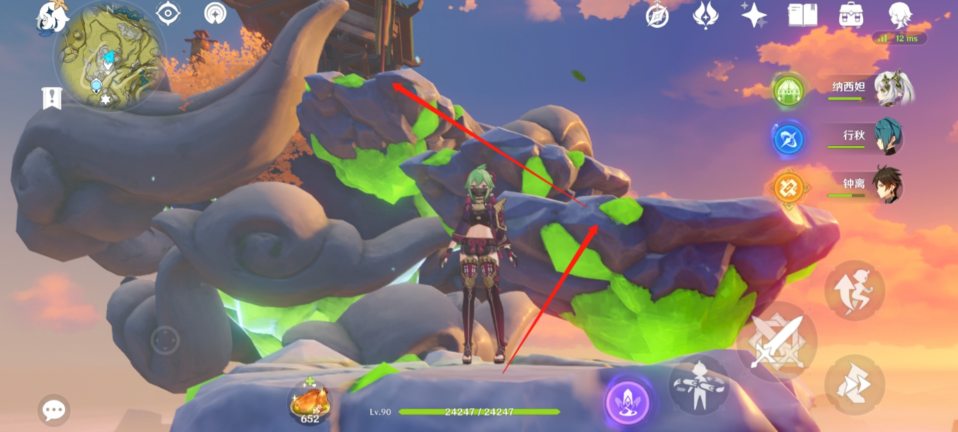 5.把视角转到小地图左上角,爬上平台(当心掉落)