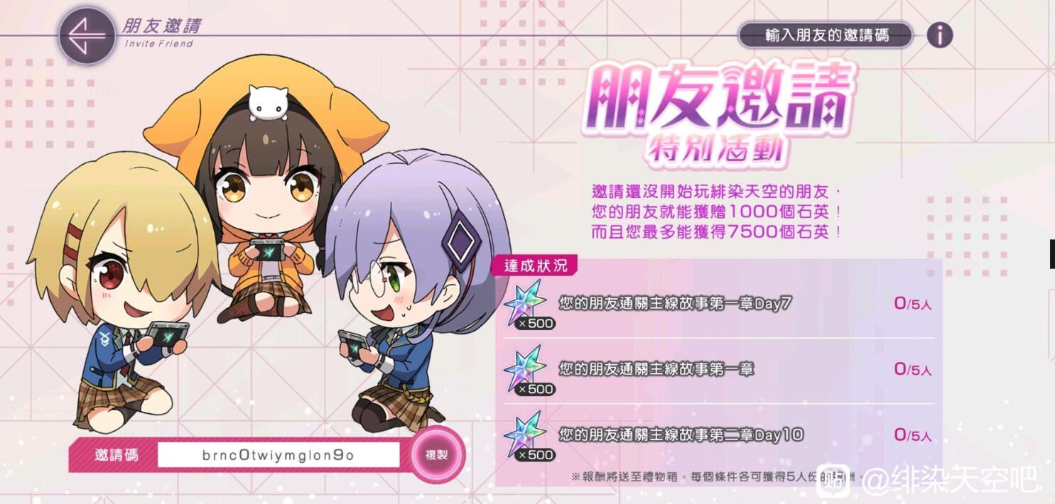 热门标签新手攻略玩法大全常见问题以上就是手游巴士为您提供《绯染天空邀请码有哪些 绯染天空邀请码怎么填》的详细内容,更多精彩内容请继续阅读上一篇《绯染天空邀请码不同服可以用吗 绯染天空邀请码怎么用》