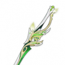 攻击力 44-542 /// 暴击伤害 19.2%-88.2%武器技能 - 白月枝芒暴击率提升4%/5%/6%/7%/8%;普通攻击造成元素伤害后,获得「裁叶」效果:普通攻击和元素战技造成的伤害提高,提高值相当于元素精通的120%/150%/180%/210%/240%。该效果在生效28次或12秒后消失,每12秒至多获得一次「裁叶」效果。