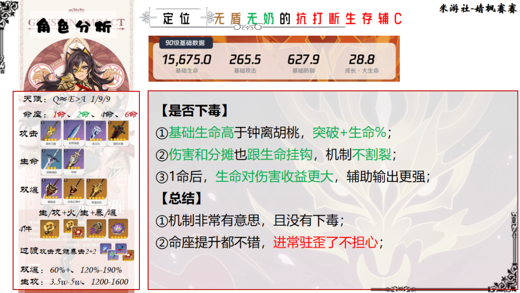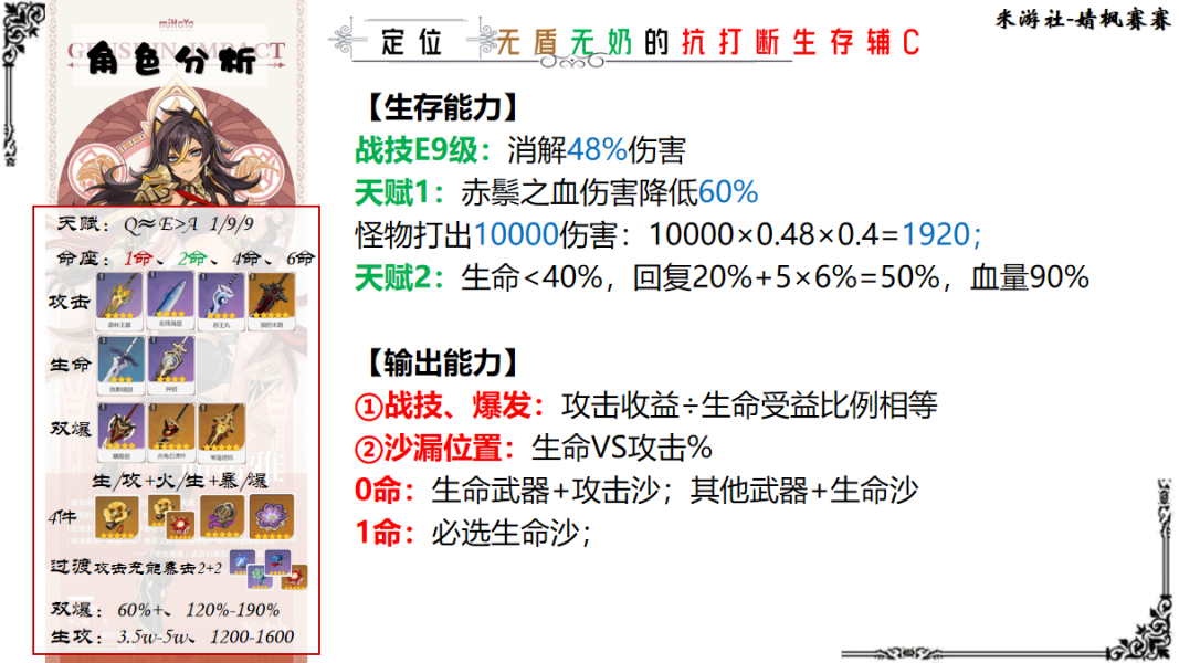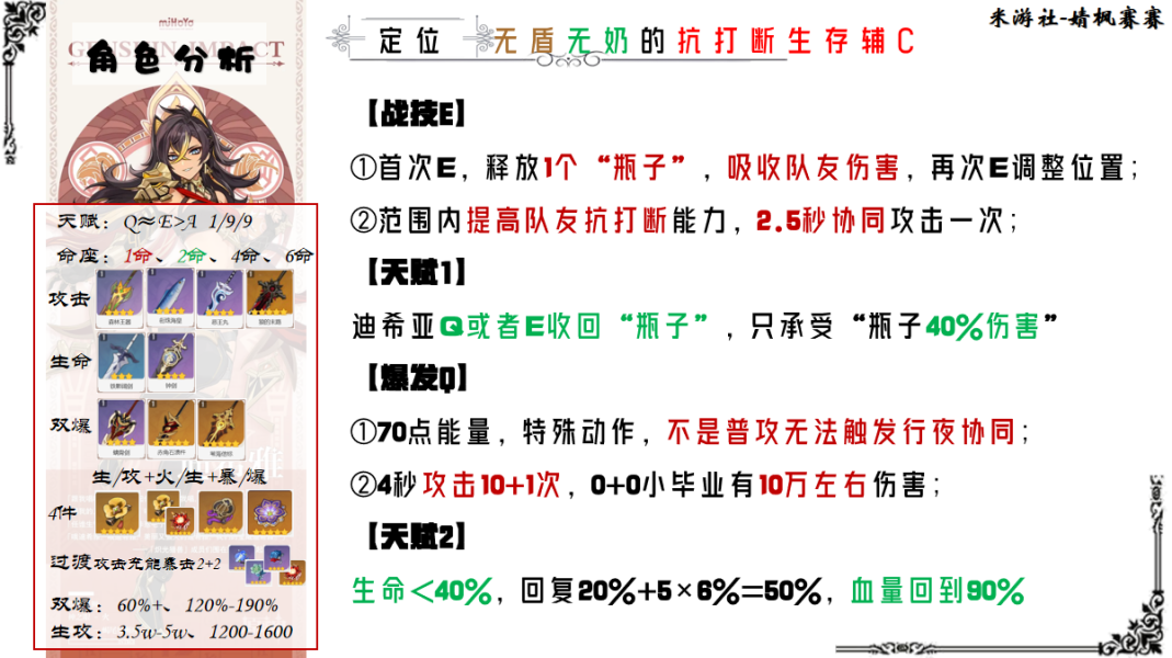 ③唯一的劣势:减少了队友伤害,但没有回复能力,在自带回复的体系中不是很担心,胡桃金箔等等。
