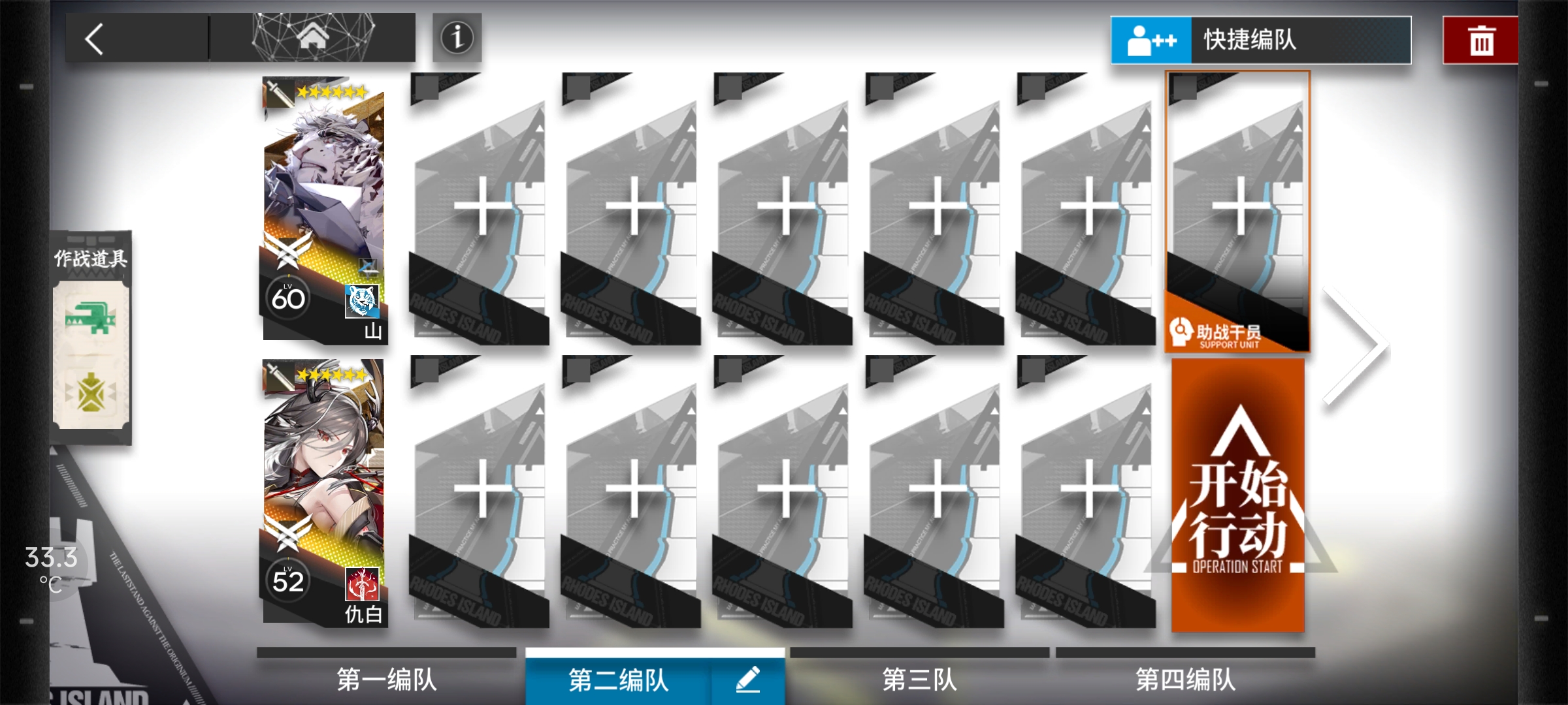 CF-2:依旧很简单,开局先部署山,然后后排部署一技能的仇白,等着挂机通关就行,山可以换成任意挡2先锋,仇白可以换成拉普兰德或者其他近卫干员,输出不足的话,在高台补充打手即可,没难度的,不需要考虑打石块弱点的额问题,敌人很菜。你要是觉得不好打可以用群卫。