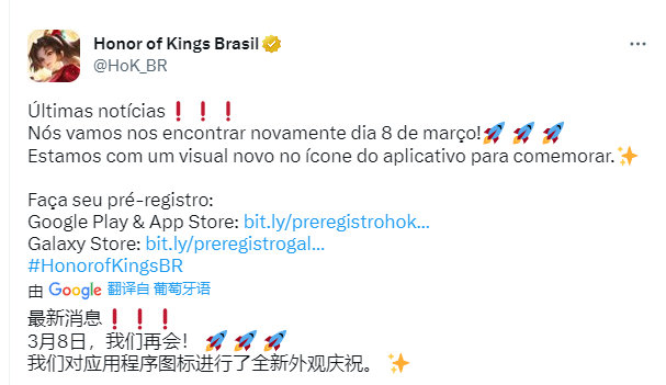 查看更多王者荣耀国际版HonorofKings热门下载 >以上就是手游巴士为您提供《巴西王者荣耀叫什么名字 巴西王者荣耀名字介绍》的详细内容,更多精彩内容请继续阅读上一篇《王者荣耀巴西服官网地址在哪 王者荣耀巴西服官网地址分享》2023-03-08 王者荣耀巴西服预注册方法分享 王者荣耀巴西服怎么预注册