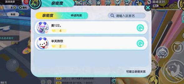 3、想要提升亲密度可以通过组队来实现,比如你和你的好友休闲派对,还有翻滚一线,巅峰派对等等玩法