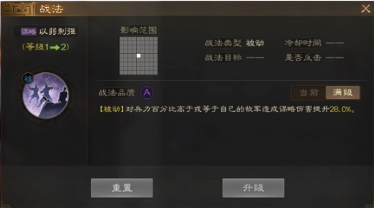 [被动]对兵力百分比高于或等于自己的敌军造成谋略伤害提升28.0%。