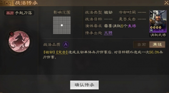 [被动] [突击]造成主动单体兵刀伤害后,对目标额外造成一次56.0%兵刃伤害。