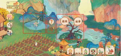 A13:除了“营造”里的建筑外,还有“桃花潭”(访客送花的)、“萝卜人许愿”(接建造娱乐建筑的任务的,建完可以领奖励)、大桃花树(过剧情的);