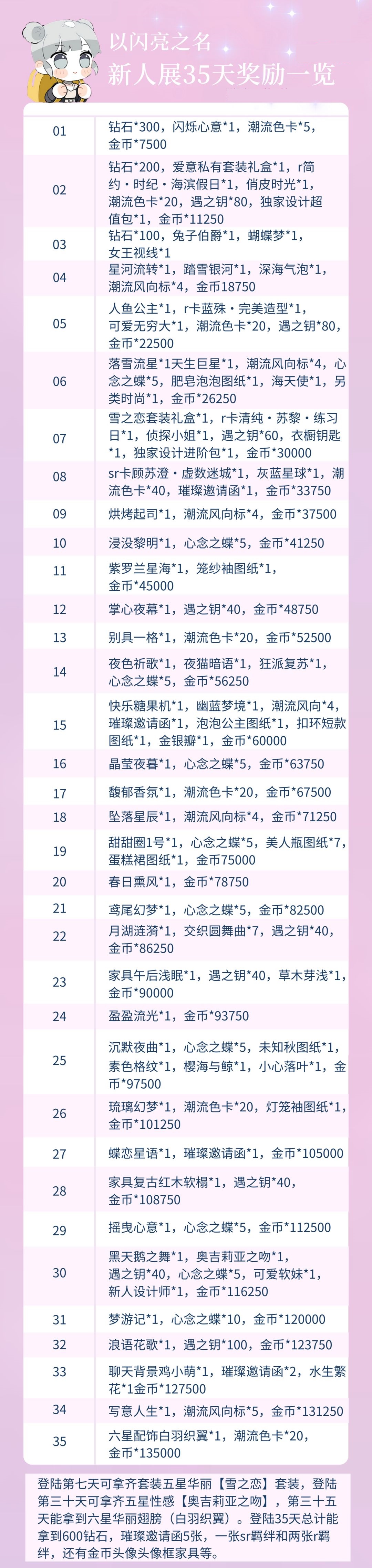 2023-03-20 以闪亮之名新人展有什么奖励 以闪亮之名新人展35天奖励一览