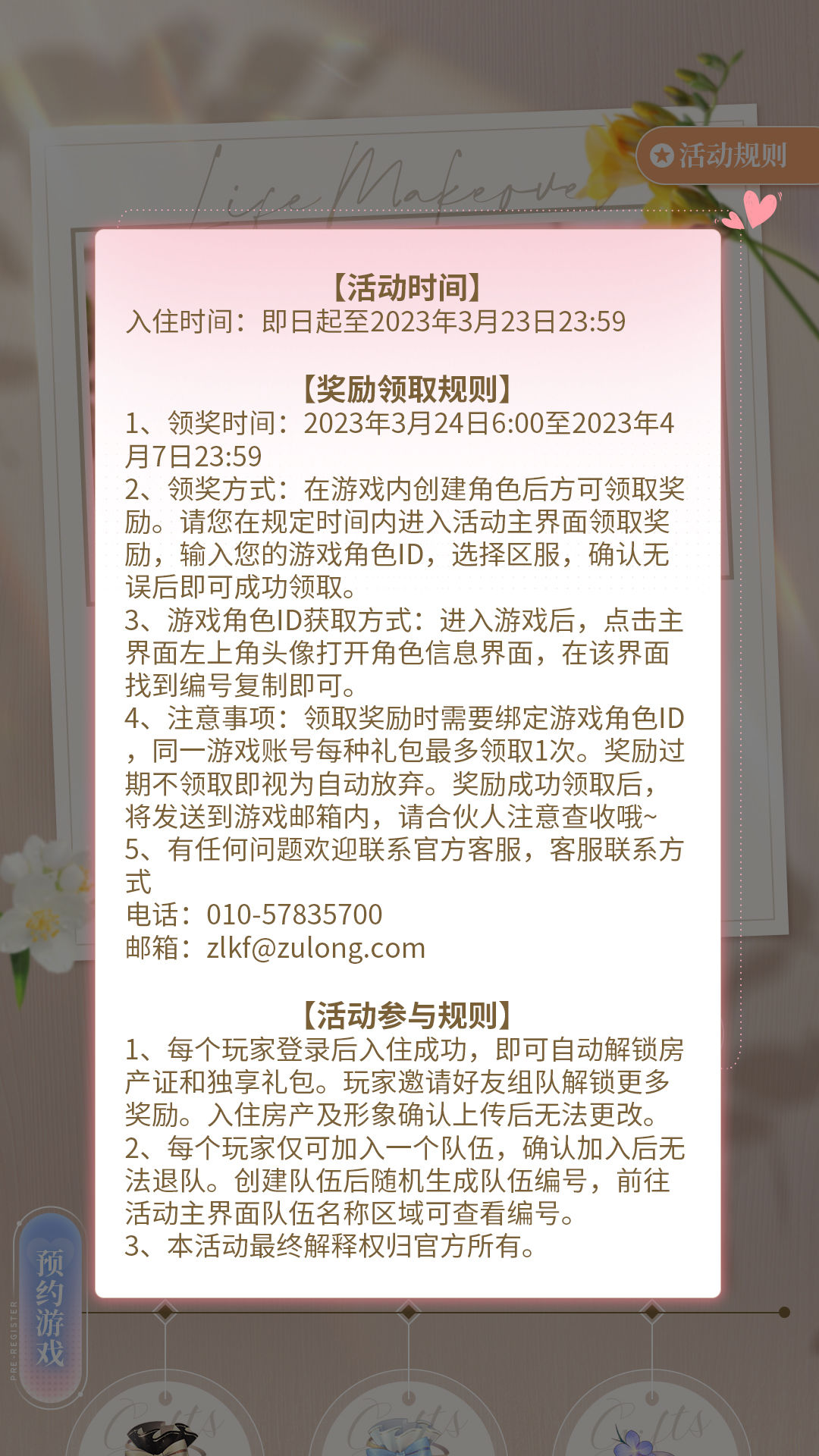 PS:H5活动内所挑选房型与游戏实际所获房型无关