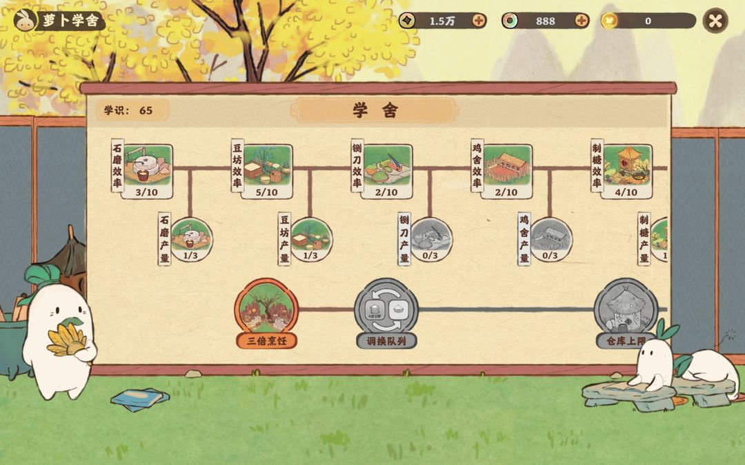 前期比较重要的是豆腐,糖,再往后一点就是饼和腌菜作物,然后是木工。