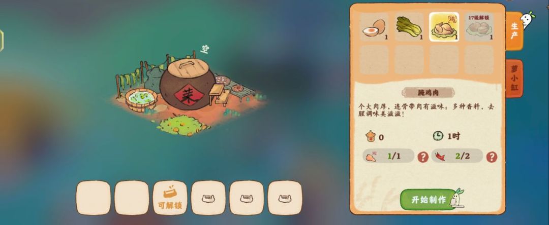 做这个剧情进度之前,大家务必一定要先把辣椒种上!!!因为他需要一个小时成熟,然后就是腌制过程,你就可以放心的休息一会,装修自己的园子,过过其他任务。