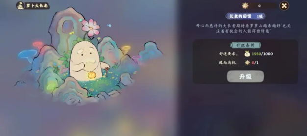当我们到达十级后就会解锁树洞,进入树洞后跟萝卜大长老进行对话,然后就会解锁长老的回馈,每隔一段时间就会获得五色土。