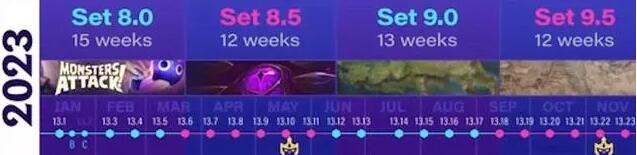 游戏中每个版本大约持续三个月左右,每个赛季都有不同的主题,并且羁绊、棋子等都会有比较大的调整,具体的调整内容和方向都需要等待后续的官方爆料了;