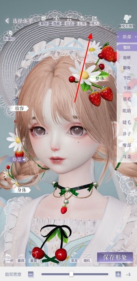 3、选择好自己的提醒之后哦我们点击上方的【导入】将自己喜欢的捏脸数据复制进去就行了。