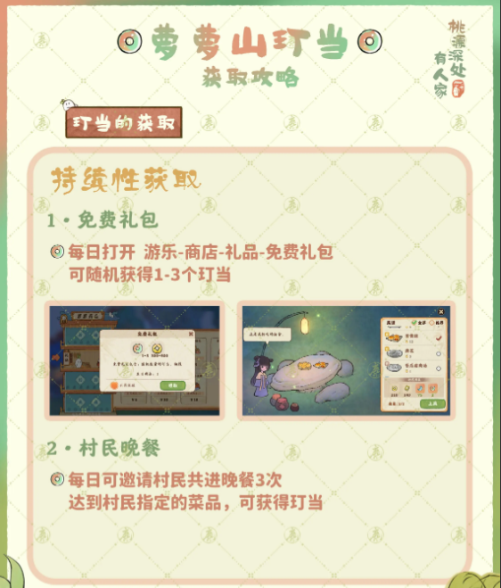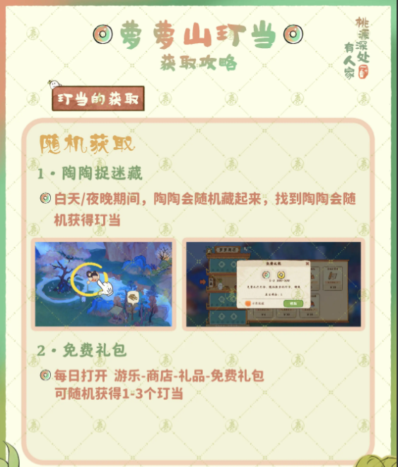 以上全部就是桃源深处有人家玎当获取攻略,希望能为各位玩家们带来帮助,想要了解更多游戏攻略及资讯请持续关注多特游戏。