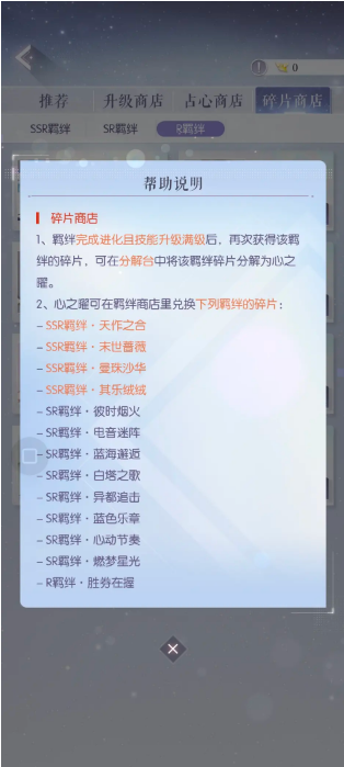 碎片商店需要单独说下,属于超值福利了,只需要分解那些多余不要的羁绊即可兑换所有的ssr与sr,对于平民玩家极度友好。