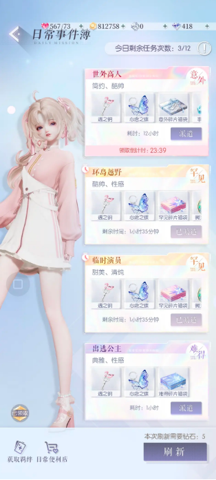 日常事件:算是游戏的日常任务,每日最多完成12次,罕见与意外级别的事件至少需要3位羁绊,尽可能多的收集羁绊是很有用的,初期如果羁绊不足担心会刷出意外级别的话,保留有3位羁绊不派遣是一种解决方式。