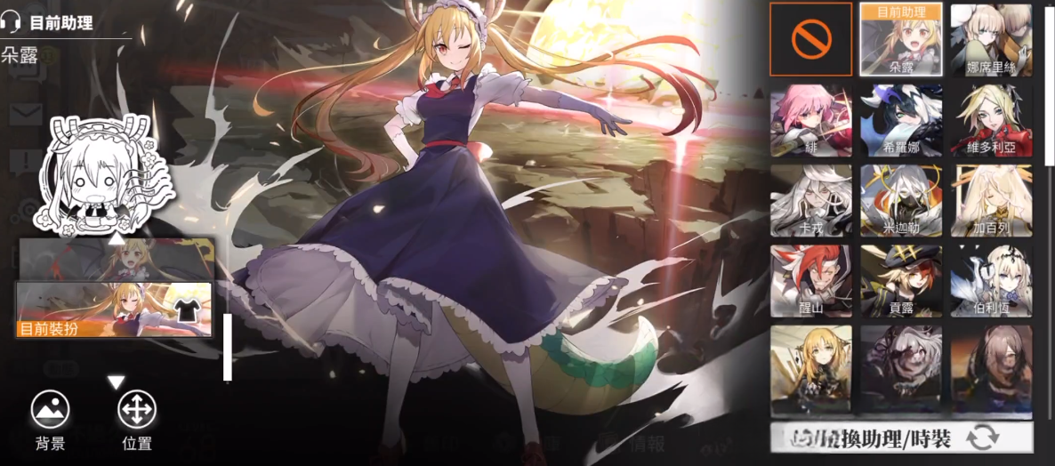 如果玩家想要更换角色的立绘,可以点击右边第3个时装按钮,进入角色衣柜。角色三破之后的立绘会显示在第2格,玩家选中保存即可更换立绘,如果玩家已经设置了这位角色作为助理,主页的立绘也会同时改变。