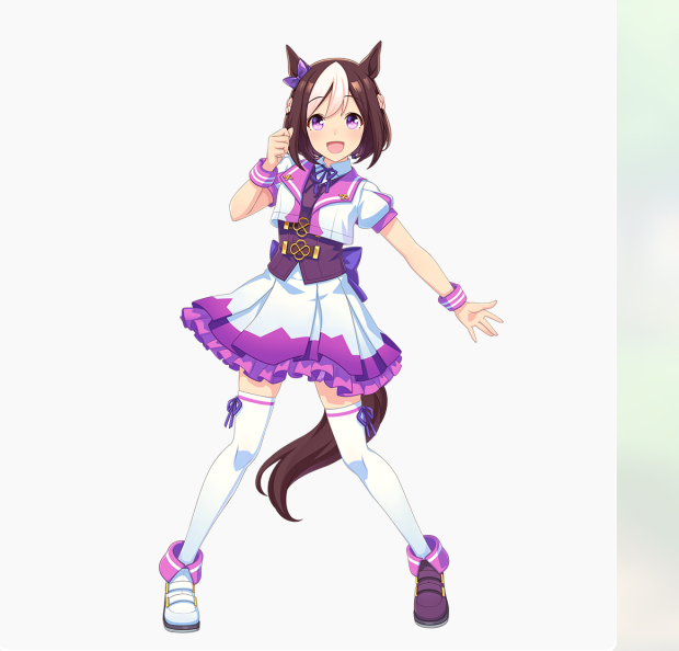从北海道的乡下上京的元气马娘。棕红色长发,紫色眼瞳。有着一出生就与母亲死别的悲剧身世,但在养育她的“妈妈”和牧场工作人员“叔叔们”的爱情包围下茁壮成长。因此非常地开朗、认真、关心朋友。无论身处何种逆境都决不放弃的努力家。刚刚转入特雷森学园,对不熟悉的环境充满困惑,但靠着天生的开朗与众多的马娘伙伴们结下了无可替代的坚固牵绊。有着纯朴、天然呆的一面,一兴奋就会冒出本地的北海道方言来。