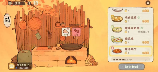 而且因为经常做菜,还有10%返还食材几率,于是真的一大堆 辣子鸡和黄焖鸡。
