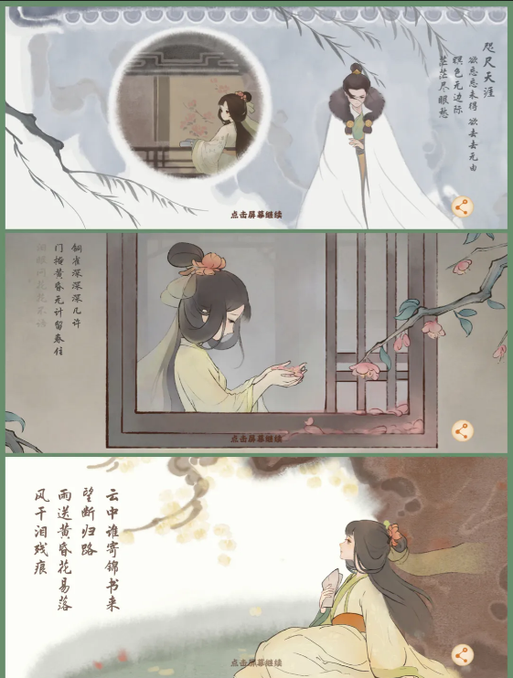 画面音乐:画风没得说,我很喜欢,给大家贴几张我家感受一下画风,身边的朋友也说很喜欢。音乐也不错,第一章剧情有一个跟陶渊明合奏的曲子,合奏完之后陶渊明就要跟他的阿翁离开了,那个bgm配上他说的话,我承认我有点想哭,可能因为我容易共情吧哎呀反正就是还不错啦!