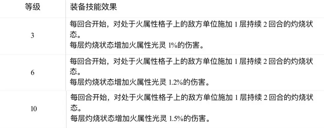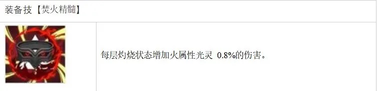 借助装备技能的效果,可以提高所有友方火系角色对处于灼烧状态下敌人的火力。
