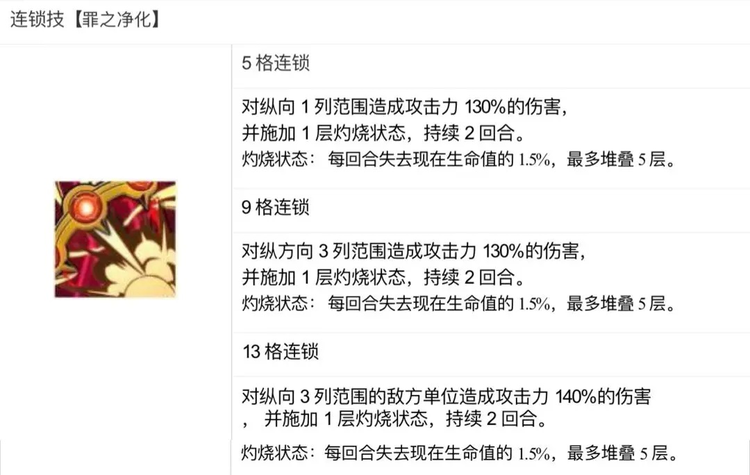 ・ 连锁技可进行纵向大范围攻击+造成灼烧效果