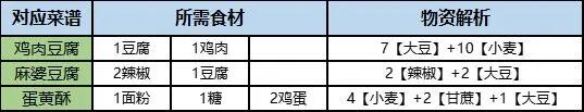 三种菜肴中最需要的作物是小麦与大豆,而这两种作物是我们最常种、常备的,不会太缺乏,所以在具体想要生产哪种菜肴可以根据自己的情况来看,如果仓库库存告急也可以优先生产鸡肉豆腐。
