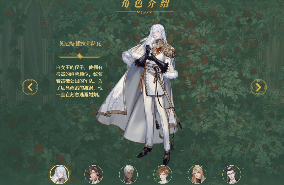 白女王的侄子,他拥有很高的继承顺位,统领着蔷薇公国的军队。为了远离政治的漩涡,他一直在刻意逃避婚姻。