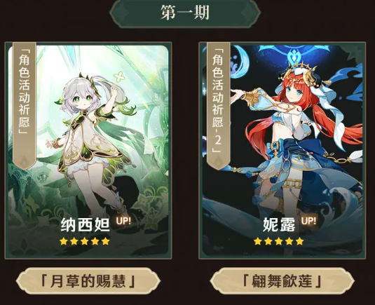 先说具体的卡池UP的五星角色,虽然说之前舅舅党猜对了,但是很遗憾顺序没猜对,这次确实是草神和妮露的复刻UP,不过UP的时间是在上半段的时间,也好,毕竟种门强无敌,草神和妮露都是实装后才体会到顶级强度的神卡,所以没啥好说的,没有的玩家抽就完事了,当然借此提高命座也不亏,毕竟草神的二命还是非常重要的。