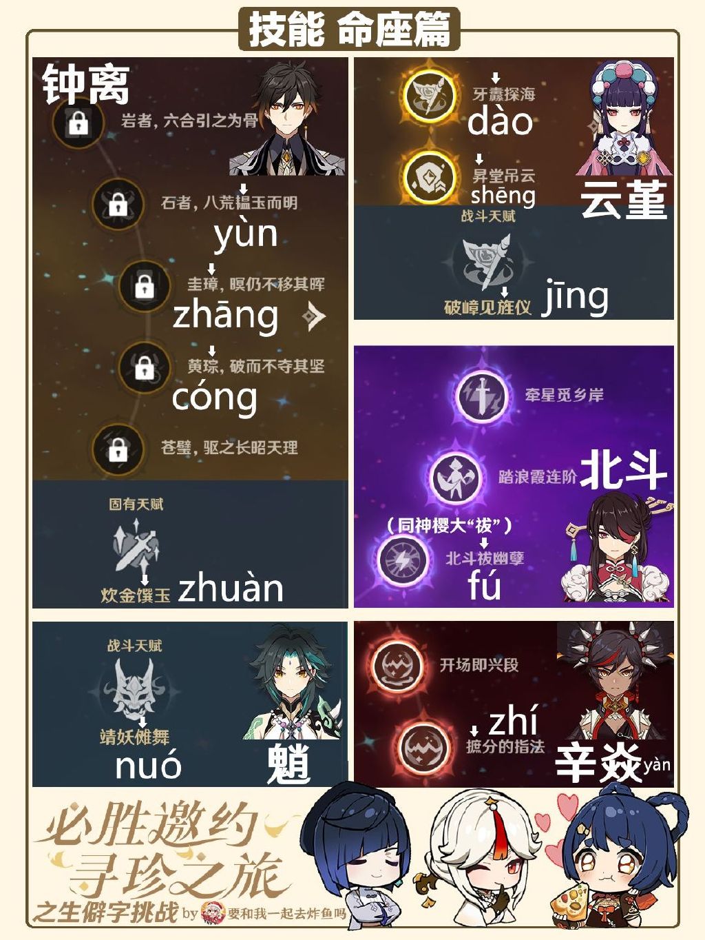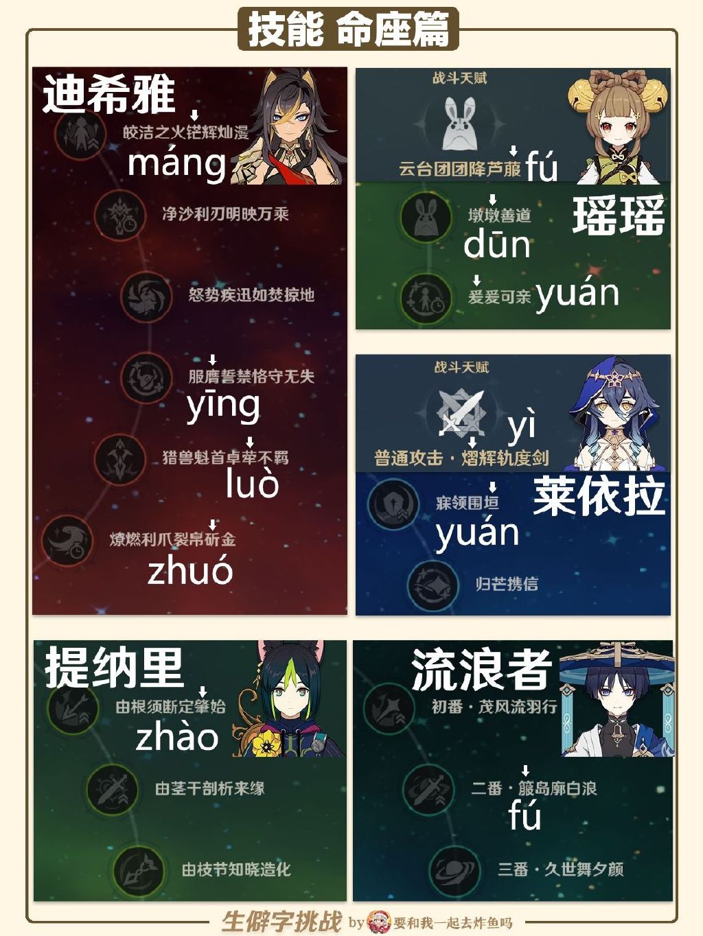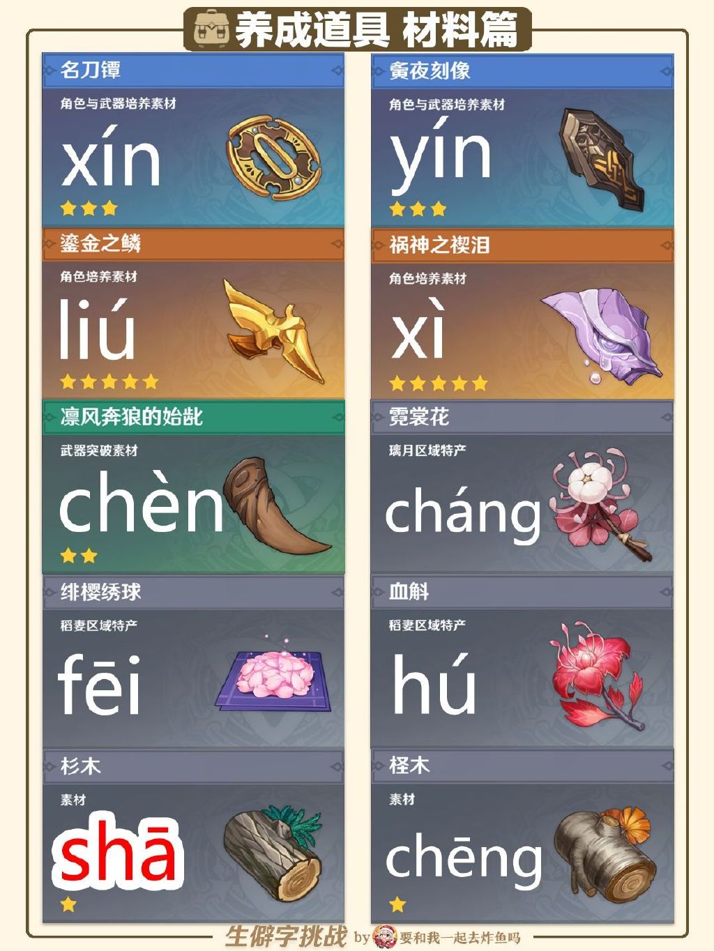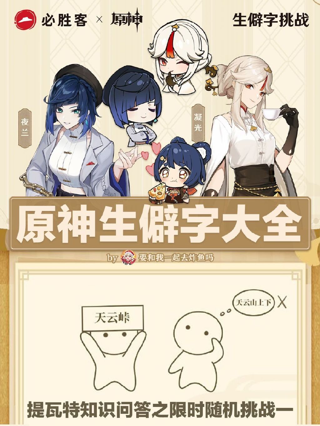 热门标签角色图鉴武器图鉴3.5攻略大全世界任务特殊料理新手攻略活动玩法装备搭配2.1版本玩法汇总周年20问韶光抚月活动阵容搭配2.2活动攻略家具图纸谜境悬兵2.3版本攻略大全常见问题2.4版本活动玩法小动物位置兑换码大全2.5版本活动攻略2.6版本攻略大全风车菊攻略任务流程2.7版本攻略大全2.8版本攻略大全3.0攻略大全3.1攻略大全3.2攻略大全3.3攻略大全七圣召唤3.4攻略大全圣遗物图鉴食物图鉴材料图鉴以上就是手游巴士为您提供《原神生僻字汇总 原神生僻字挑战答案大全》的详细内容,更多精彩内容请继续阅读上一篇《重返未来1999充值返利规则是什么 重返未来1999三测充值返利规则》2023-04-03 白夜极光乌鸦角色图鉴 乌鸦角色信息和技能及突破属性一览