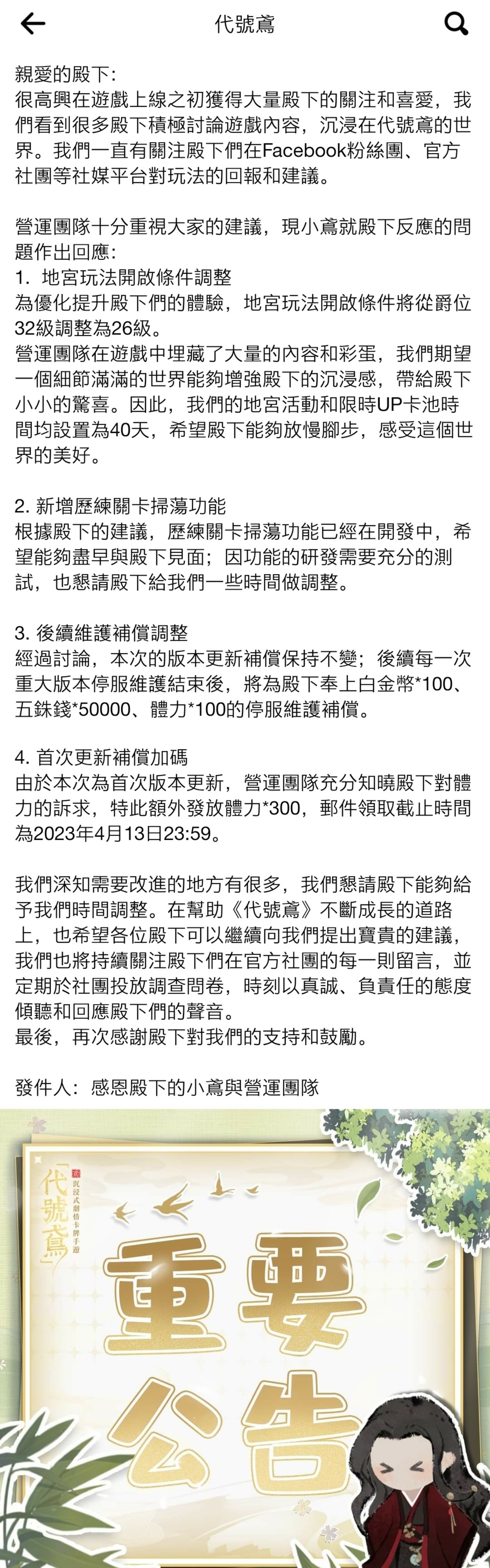 2023-04-06 代号鸢4月6日官方公告是什么 代号鸢4月6日官方公告分享